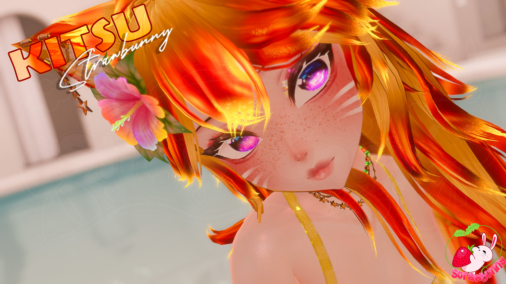 Unity work IIShalo and Me + Quest conversion by Noelia ✩ Face Tracking setup by XKittyVR ✩ Head (Head edit + face tex edit by me, no reuse) ✩ Body ✩ Hair 1 and 2 ✩ Hair 3 ✩ Sunglasses ✩ Ears + Tail ✩ Choker ✩ Face Stripes ✩ Bikini + Floatie + Sun hat + Dress ✩ Sandals ✩ Flower ✩ Eye Tex ✩ Backpack ✩ Follower ✩